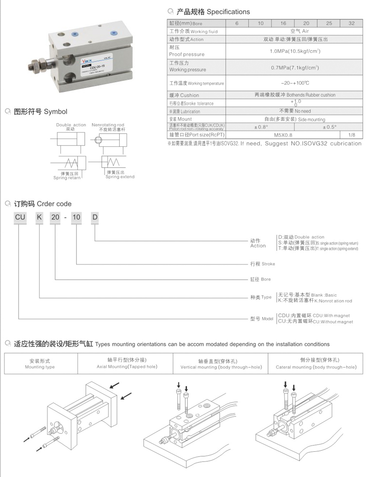 CU系列自由安装气缸
