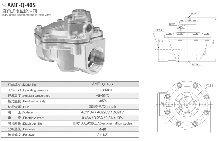 AMF-Q-40S Rectangular electromagnetic pulse valve