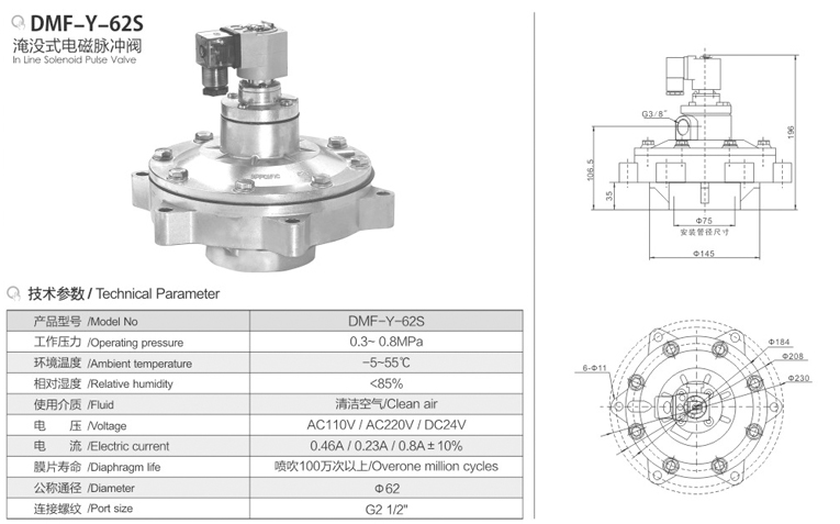 DMF-Y-62S Submerged electromagnetic pulse valve