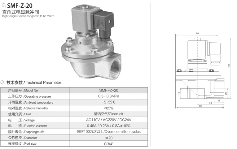 SMF-Z-20S Rectangular electromagnetic pulse valve